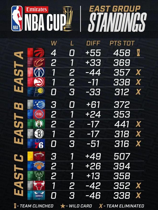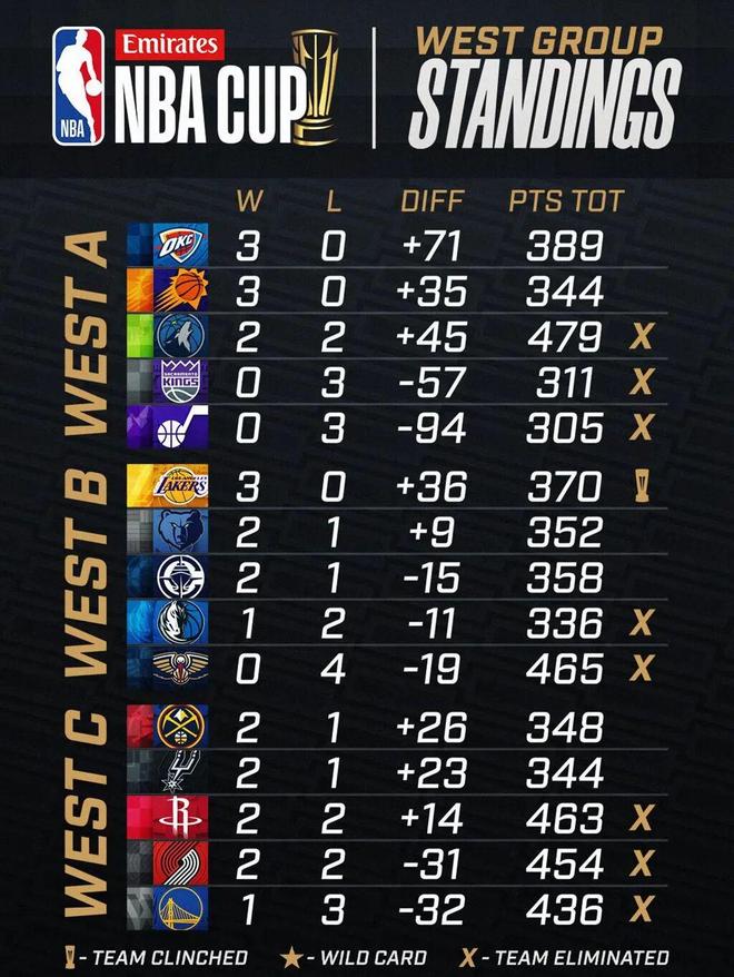 NBA 季中赛的小组赛已经接近完结,率先出现的两支队伍,有点出乎意料。