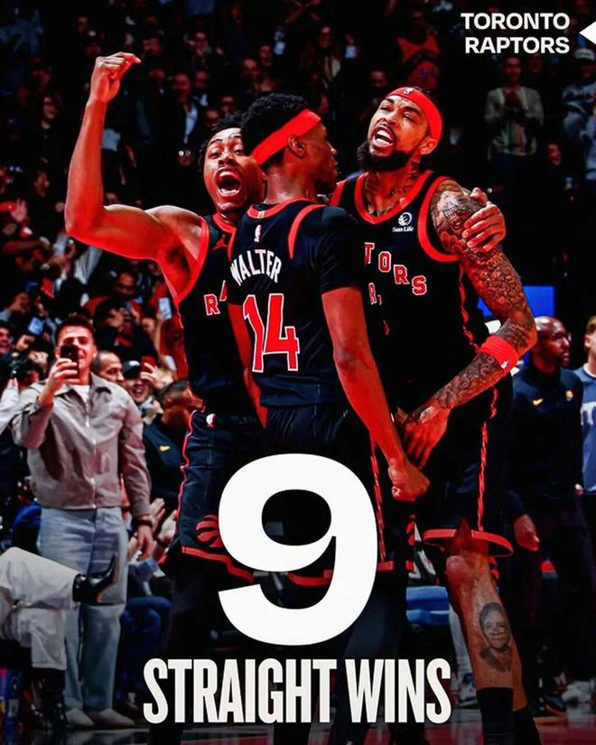 另一支谁也没想到居然是猛龙队,赛季初还在挣扎的他们,近期狂轰 9 连胜直冲东部第二。