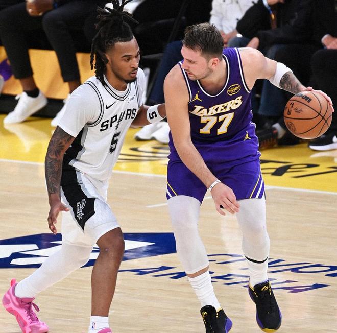 湖人(主队):东契奇24分3板2助、詹姆斯12分8板1助2帽、艾顿8分5板1助、斯玛特5分2板1助、里夫斯4分4板6助、八村塁3分1助、海斯2分3板