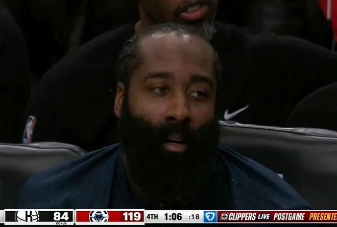 开场哈登的第一攻,就被克拉克斯顿帽掉