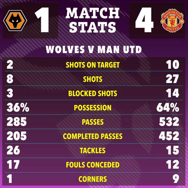 曼联本场射门27次,10次射正,本该打入更多进球,尽管单场4球已经是本赛季球队的最高得分数。BBC英国广播公司和《太阳报》等英媒均戏称,曼联似乎在避免过多进球。